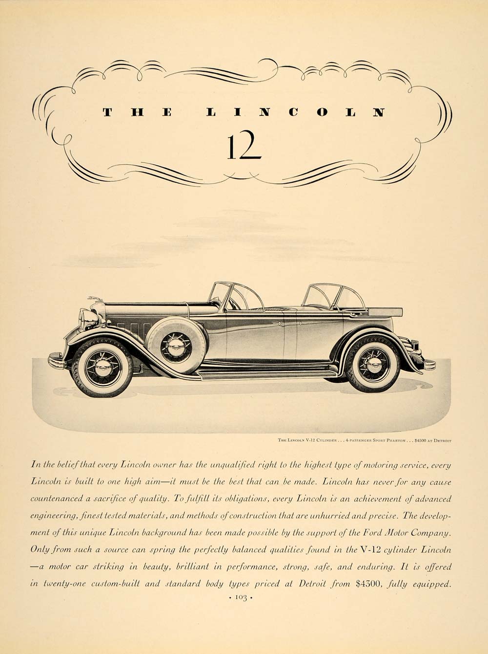 This is an original 1932 black and white print ad for the Lincoln 12 from the Ford Motor Company.