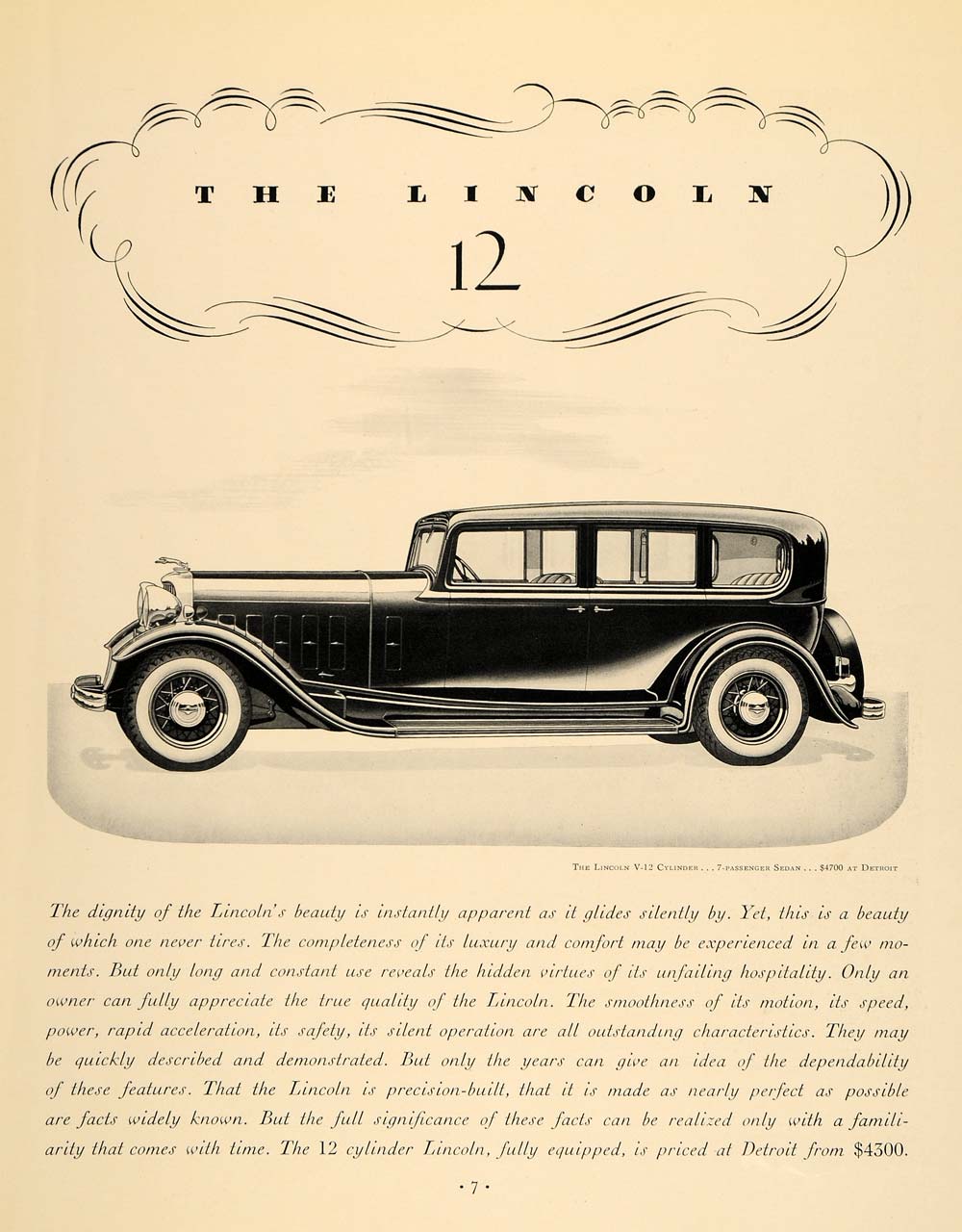 1932 Ad Lincoln V-12 Cylinder 7-Passenger Sedan Auto - ORIGINAL ADVERTISING F6A