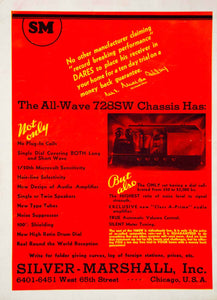 This is an original 1932 color print ad for All-Wave 728SW Chassis Has from Silver-Marshall, Inc.
