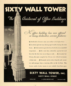 This is an original 1932 black and white print ad for the Sixty Wall Tower.