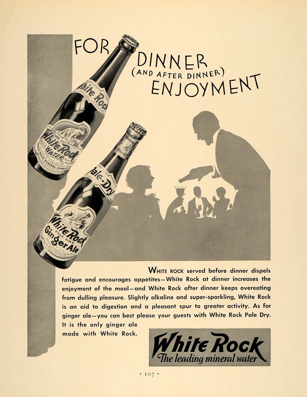 1932 Ad White Rock Mineral Water Ginger Ale Beverage Soda Party Dinner F5A