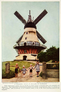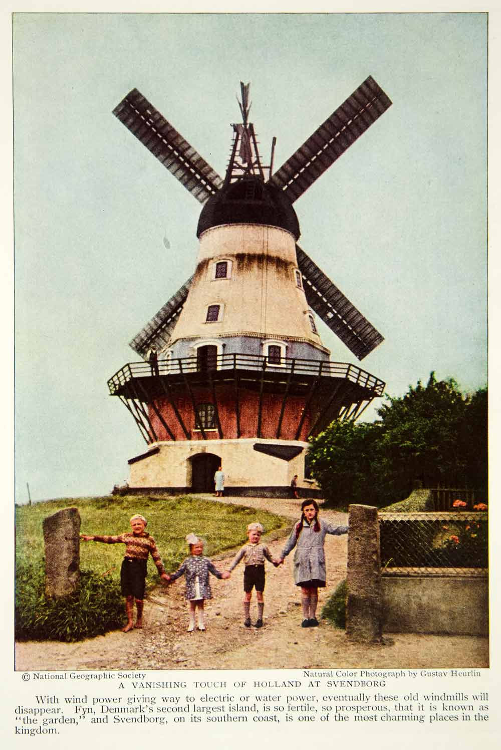 This is an original 1932 color print of a windmill on the Danish island of Fyn, near the town of Svendborg.