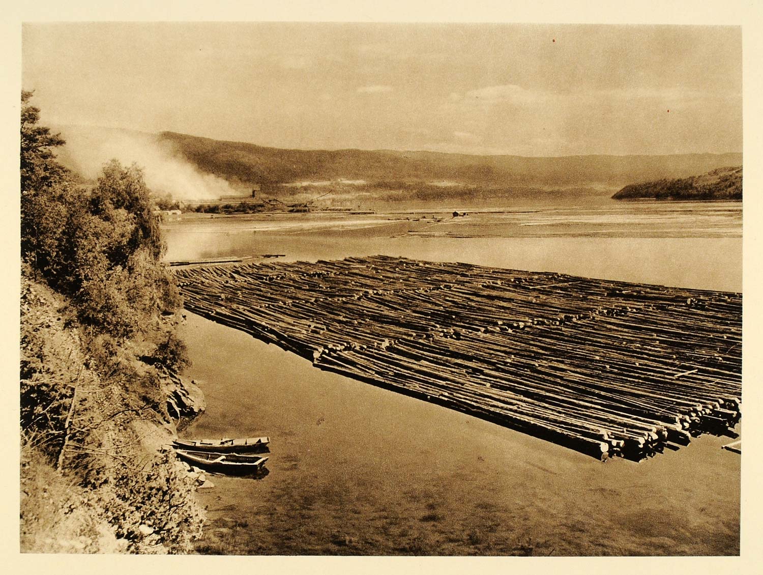 1932 Floating Timber Wood Logs Lake Heddal Norway - ORIGINAL PHOTOGRAVURE SC3