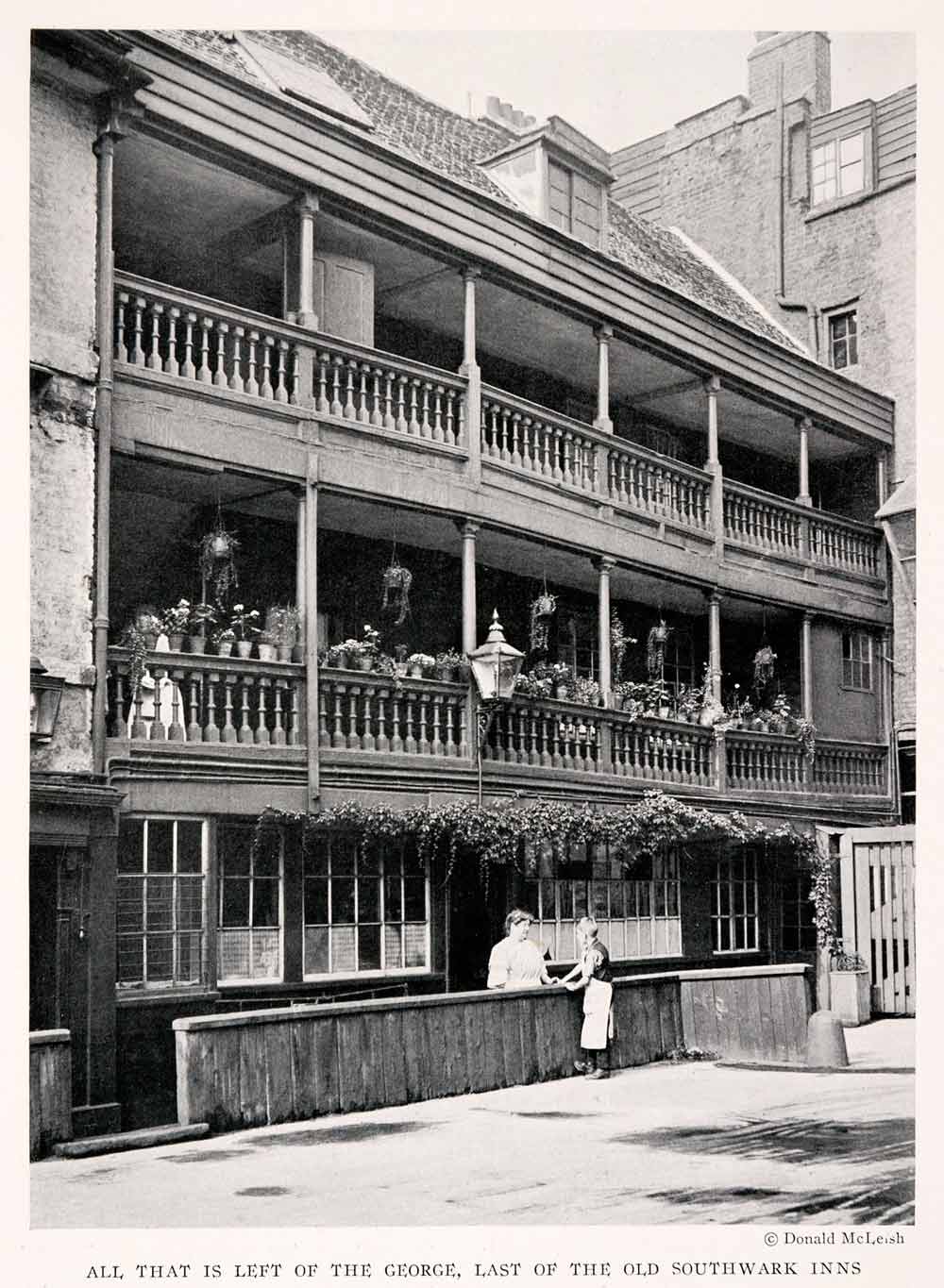 This is an original 1932 black and white halftone print of the last of the Old Southwark Inns of London. Photography courtesy of Donald McLeish.