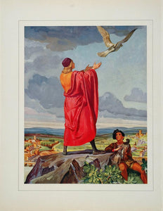This is an original 1932 full-color print of a man releasing a bird by artist Peter Helck, (1893 - 1988).