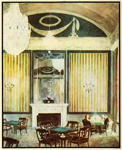 This is an original 1932 color print of the card room of the Union League Club of New York. The current clubhouse opened in 1931 and was designed by Benjamin Wistar Morris III, but the Union League Club has been around since 1863. Some notable members of the club were J. P. Morgan, Herbert Hoover, Theodore Roosevelt, and Ulysses Grant.