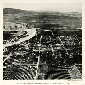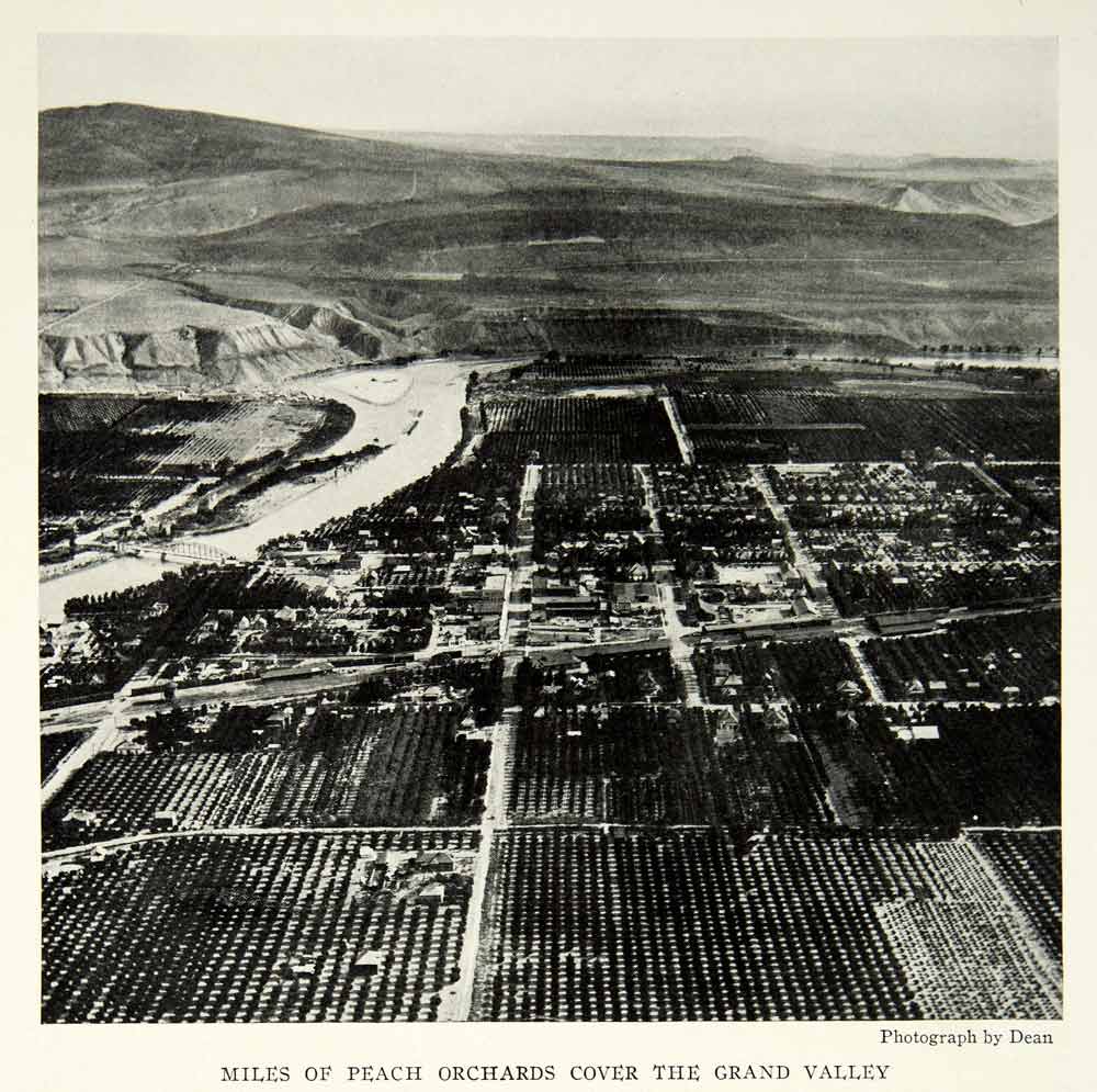 This is an original 1932 black and white halftone print of and aerial view of numerous peach orchards in the Colorado River Valley.