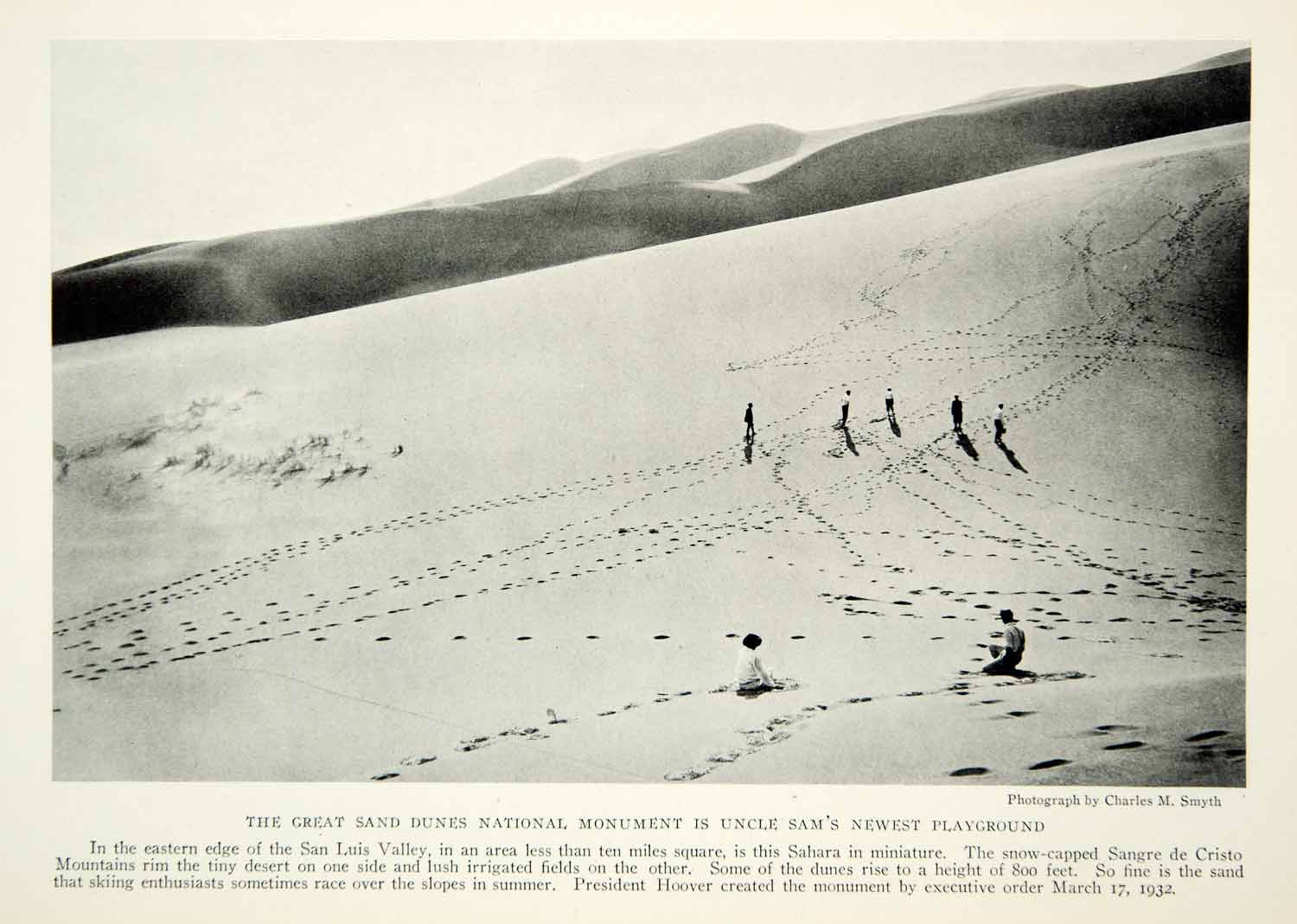 This is an original 1932 black and white halftone print of the landscape of the Great Sand Dunes National Park in Colorado.