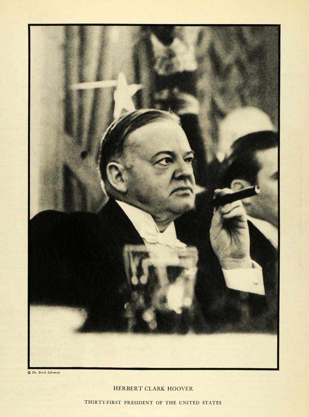 This is an original 1932 halftone print of Herbert Hoover. Hoover was the 31st president of the United States. The Great Depression hit during his presidency and Hoover was considered a disappointment. Shanty towns began appearing across the United States and were known by the people as "Hoovervilles," to demonstrate their frustration and disappointment. Photography by Dr. Erich Salomon.