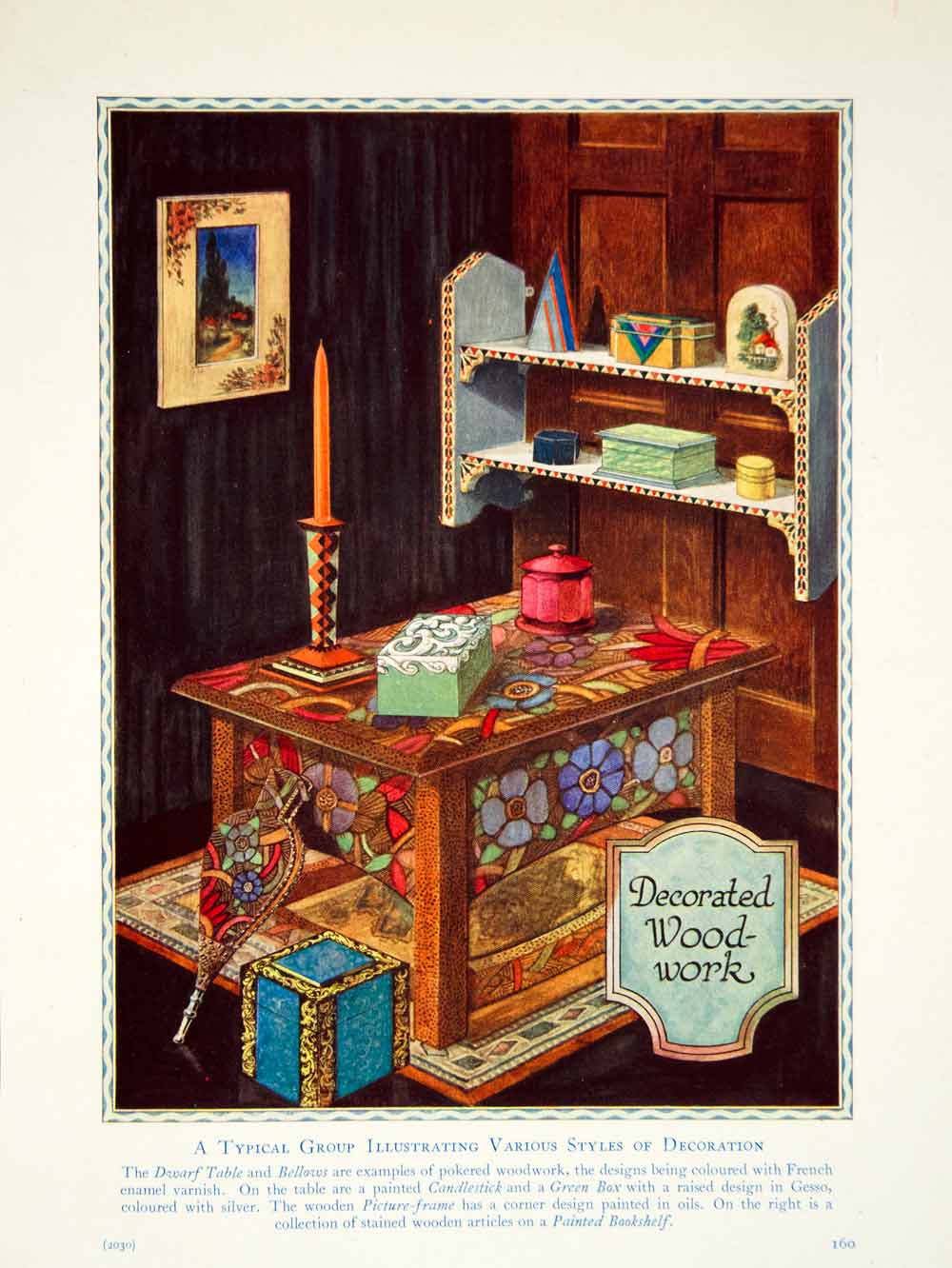 This is an original 1932 color halftone print of a group of items showcasing the various styles of decorating.