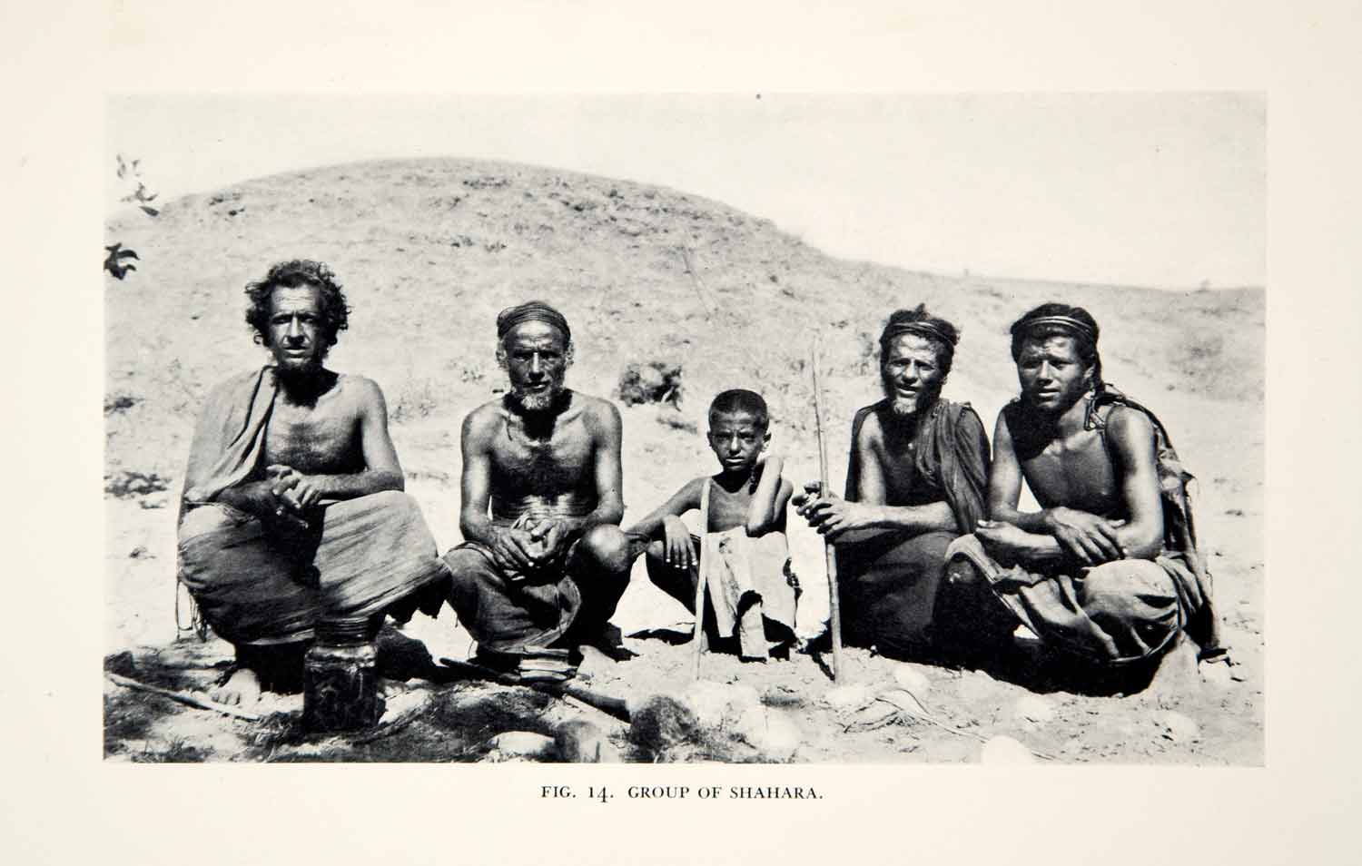 This is an original 1932 black and white halftone print that depicts a group of Shahara tribesmen in the Middle East.