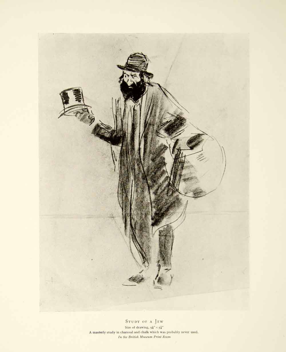1932 Print Study Sketch Jewish Man Portrait Top Hat Caricature Fashion Phil XDF4