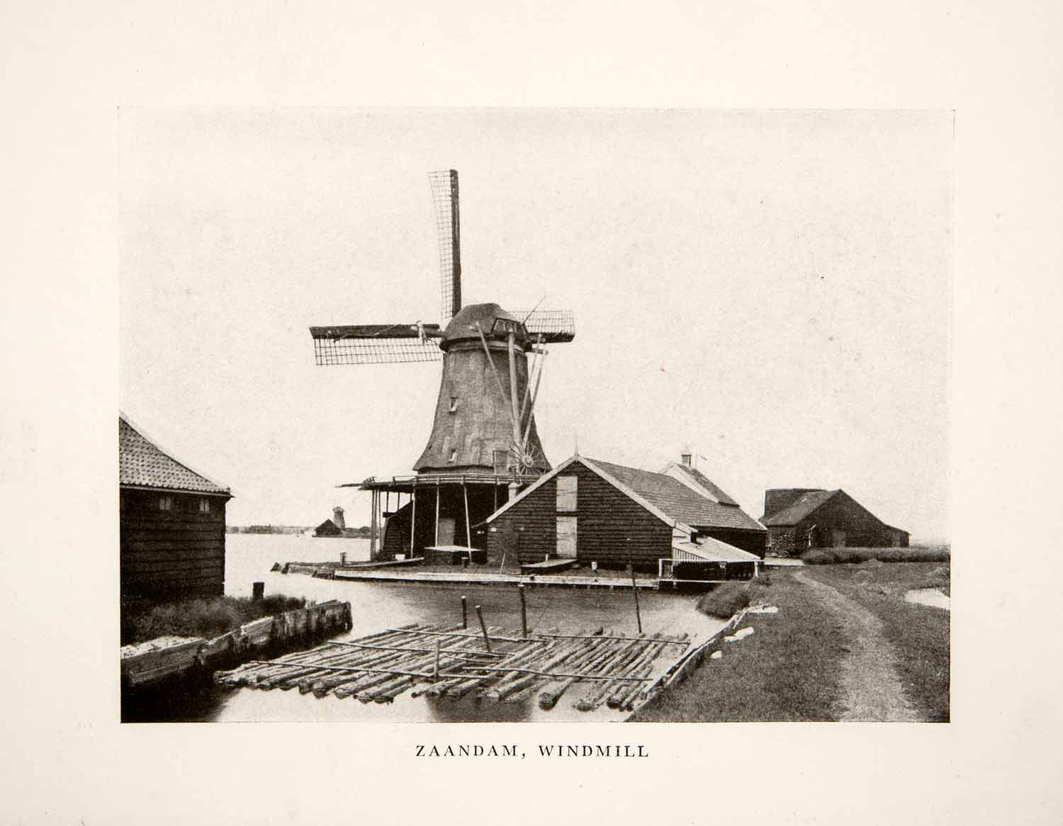 This is an original 1932 black and white halftone print of a windmill in Zaandam, North Holland.