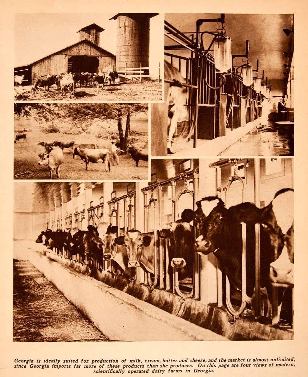 This is an original 1932 black and white rotogravure of dairy farms in the state of Georgia which is located in the southeastern United States of America. This state was first established in 1732 and was the last of the original Thirteen Colonies. It was also named after King George II of Great Britain.