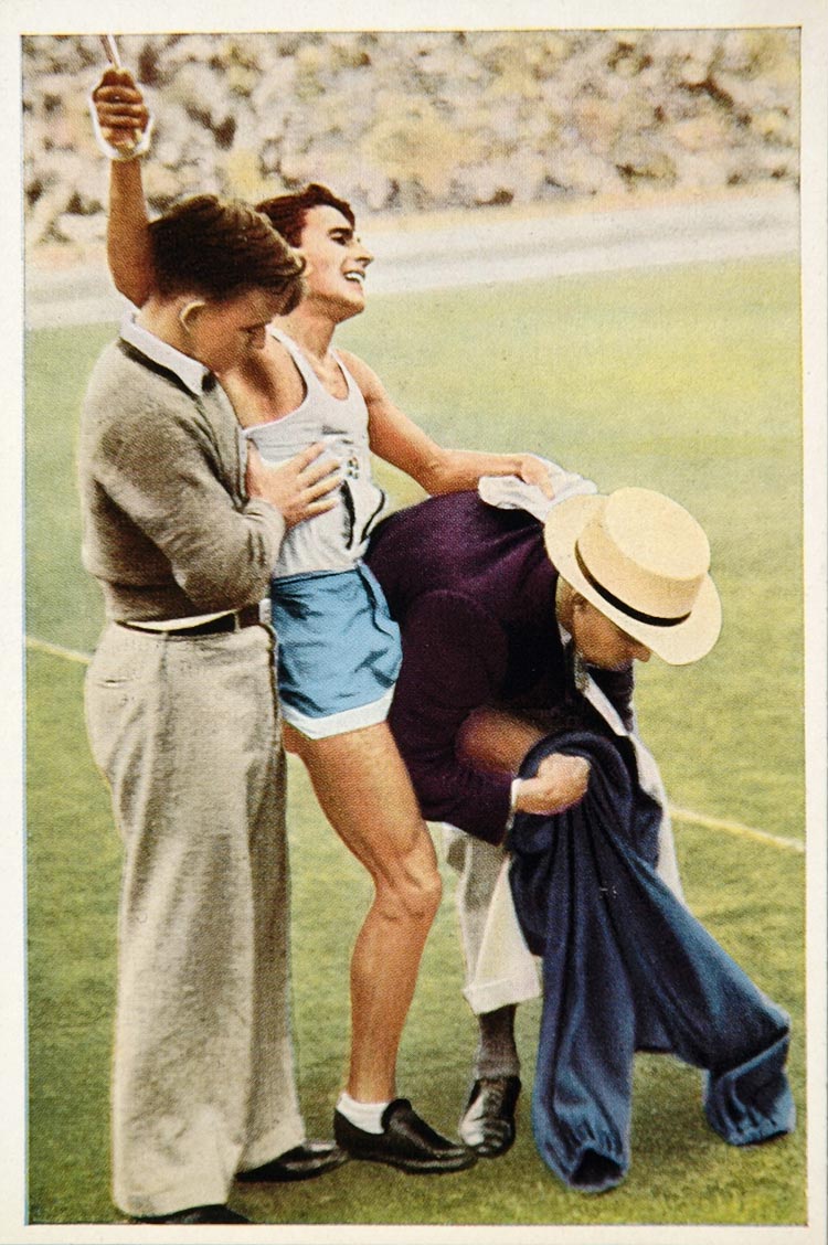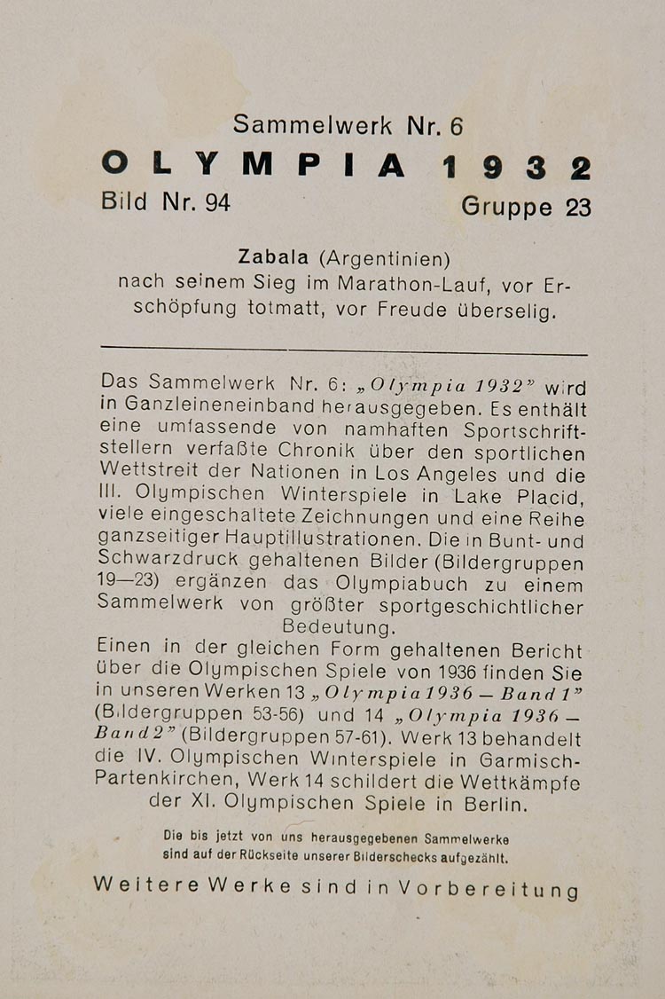 This is an original 1932 color print of Juan Carlos Zabala, Argentina, the Gold medalist in the marathon race at the 1932 Summer Olympics.