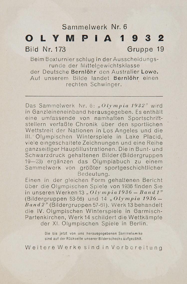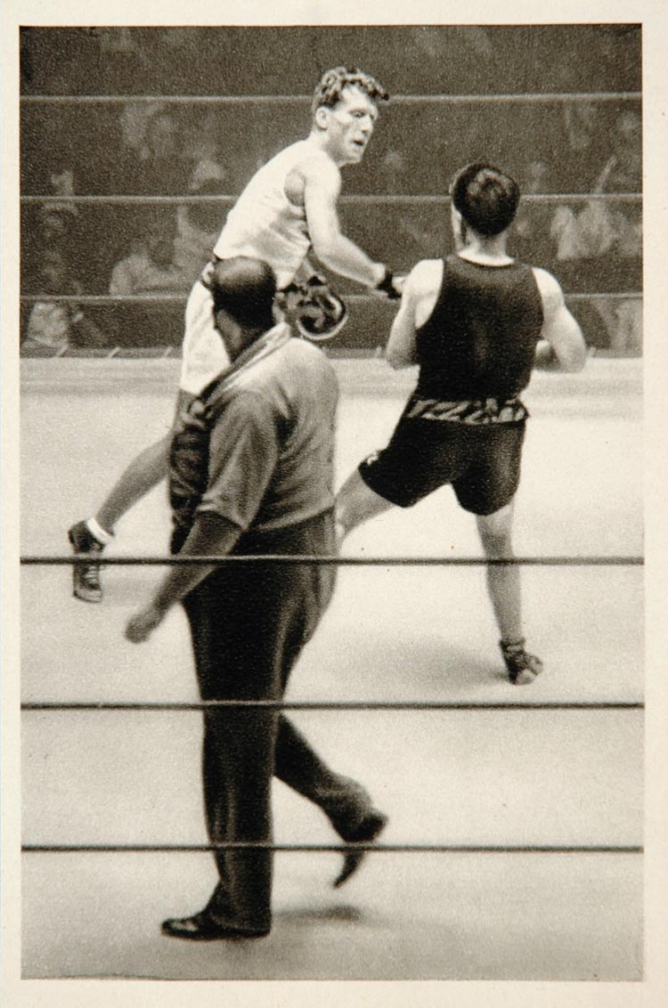 This is an original 1932 halftone print of boxers Bernlšhr, Germany; and Lowe, Australia in the middleweight boxing competition at the 1932 Summer Olympics.