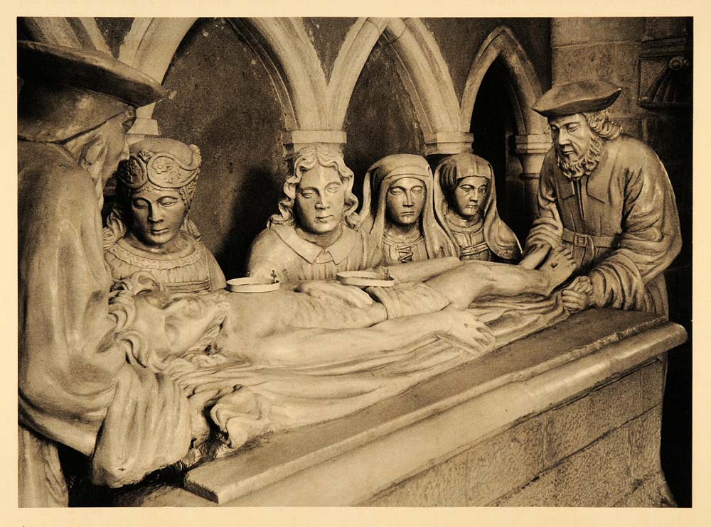 1932 Tomb Sculpture Church Septfontaines Luxembourg - ORIGINAL PHOTOGRAVURE LUX2