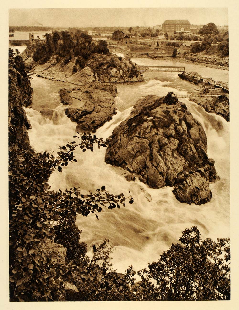 1932 Trollhaette Falls Sweden Malgo Bridge Waterfall - ORIGINAL PHOTOGRAVURE SC3