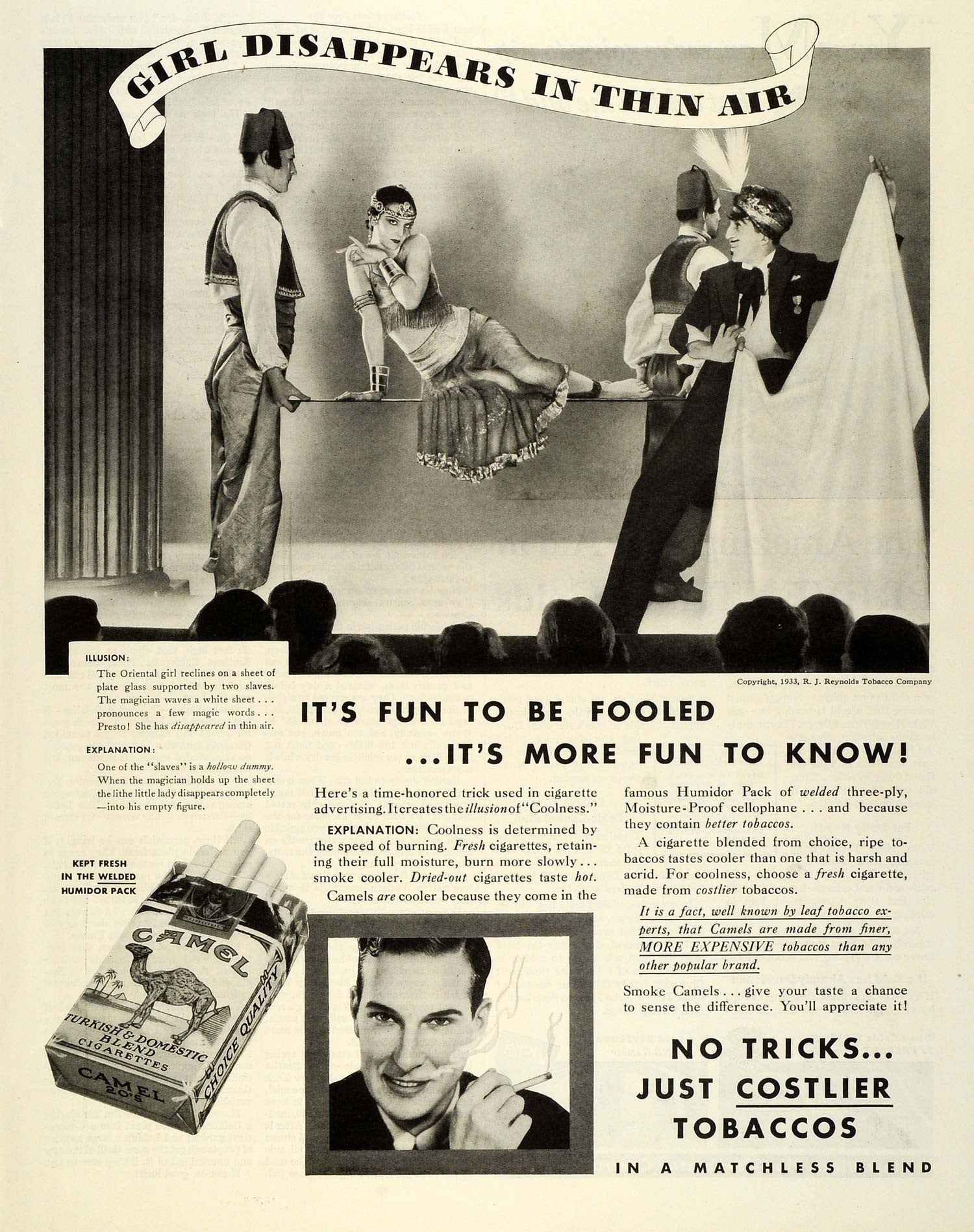 1933 Ad Camel Cigarettes R J Reynolds Tobacco Magician Magic Disappearing MX7