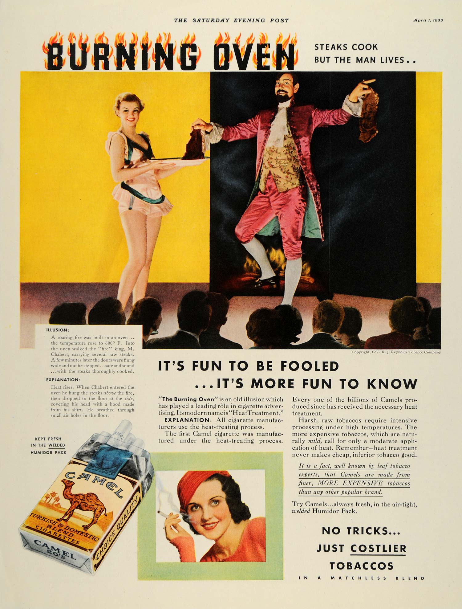 1933 Ad Camel Cigarettes Tobacco Chabert Burning Oven - ORIGINAL SEP4