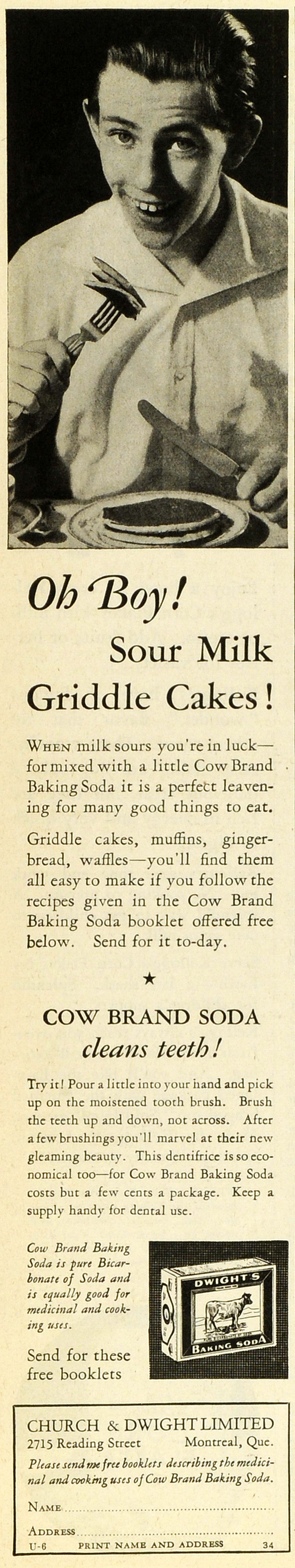 This is a small original 1933 black and white print ad for the Dwight's Baking Soda from Church & Dwight Limited located at 2715 Reading Street, Montreal, Quebec, Canada.