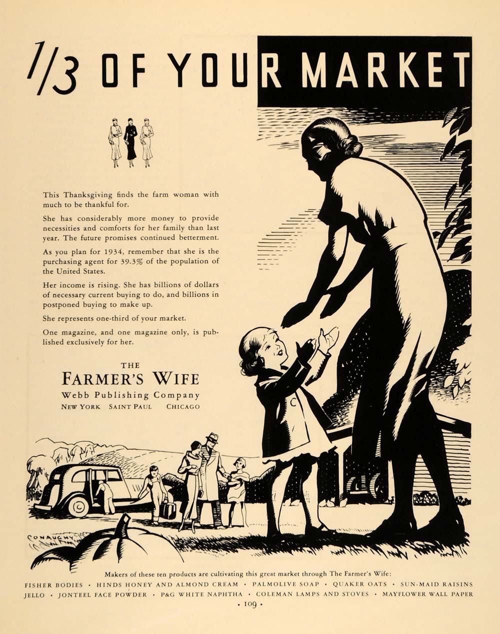 Keywords specific to this image: Thanksgiving, Quaker Oats, Fisher Bodies, Sun-Maid Raisins, Jello, Children, Mother, Antique Car Vintage Advertising