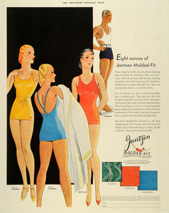 This is an original 1933 color print ad for Jantzen Molded-Fit Swimming Suits by the Jantzen Knitting Mills located in Portland, Oregon.