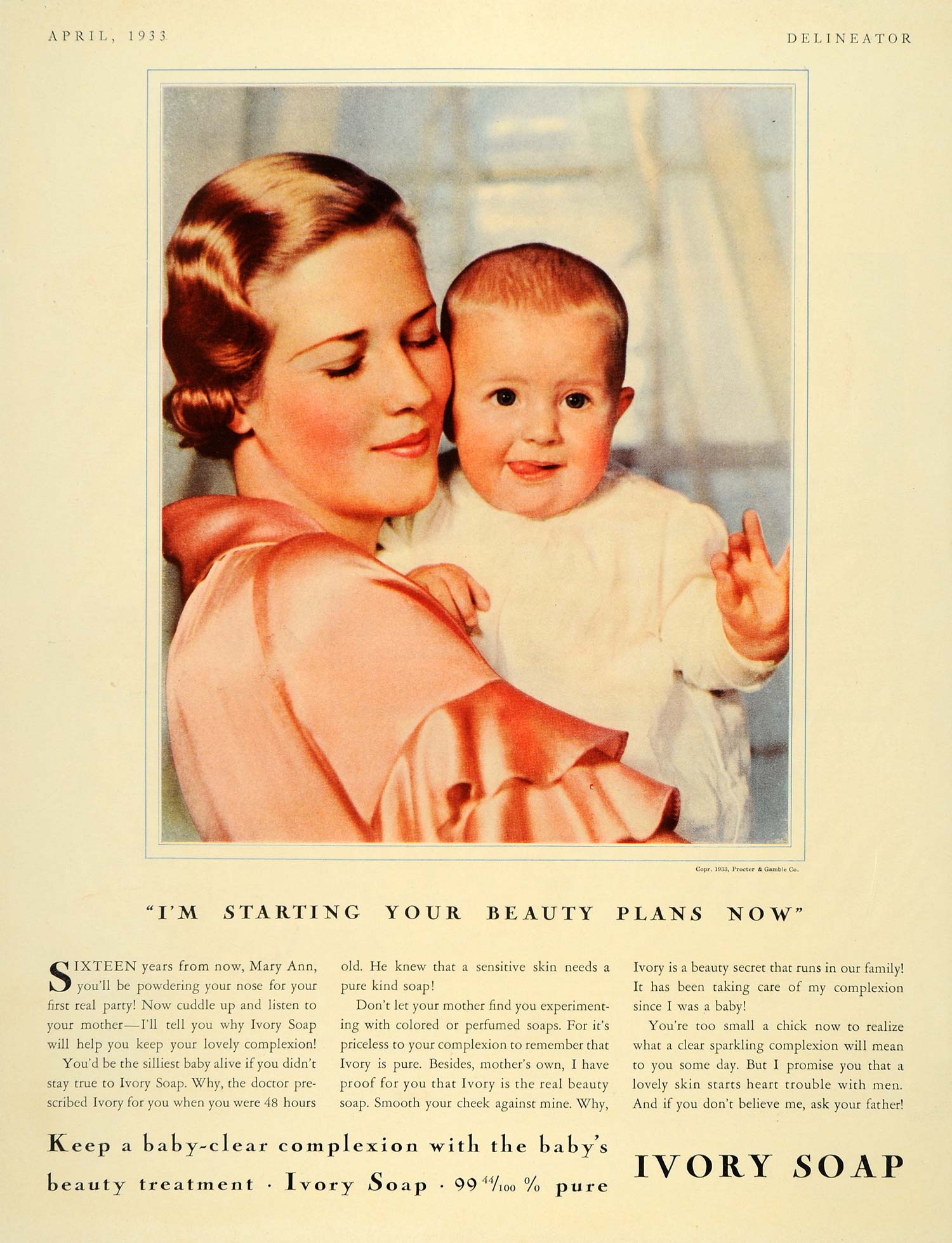 1933 Ad Procter Gamble Ivory Bath Soap Mary Ann Baby Complexion Tongue Mom DL2