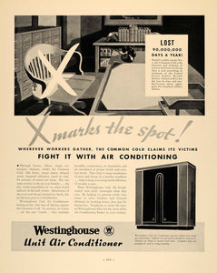 This is an original 1933 black and white print ad for the Westinghouse Unit Air Conditioner.