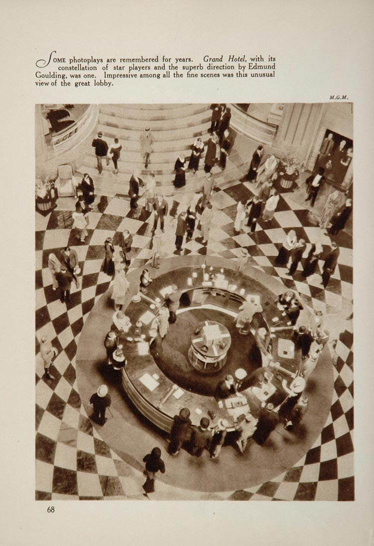 Grand Hotel. It is a cool overhead shot of the lobby with the reception desk and stairway.