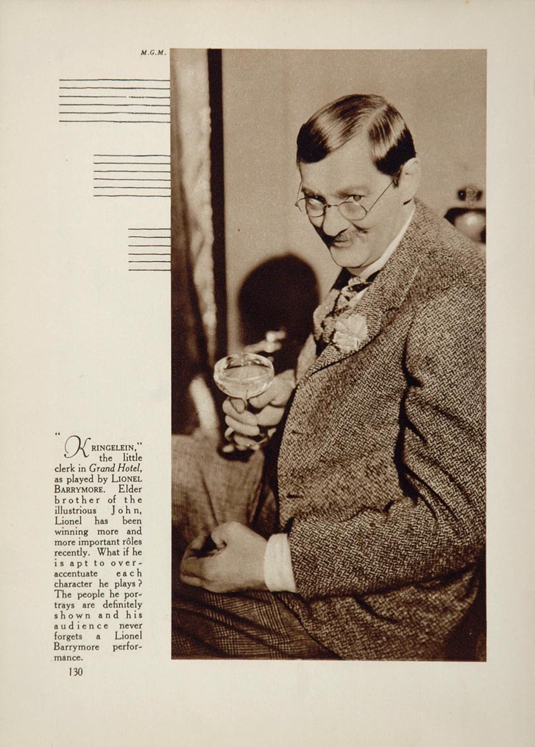 Lionel Barrymore (1878-1954) Brother of John Barrymore, he was an actor and director. Some of his films include: Arsne Lupin (1932), Grand Hotel (1932), Rasputin and the Empress (1932), Night Flight (1933), and Dinner at Eight (1933).