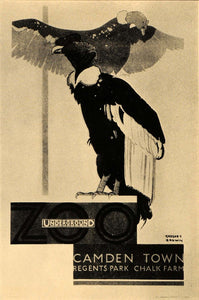 This is an original 1933 halftone print of a poster advertising the London Zoo by Underground at either the Regent's Park, Camden Town or Chalk Farm Tube Stations.