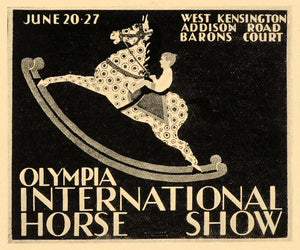 This is an original 1933 halftone print of a London Underground Railway poster advertising the Olympia International Horse Show. (Please note that, typical of halftone prints, there is printing on the reverse.)
