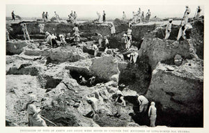 This is an original 1933 black and white halftone print of an archeological excavation at Ras Shamra in Syria.