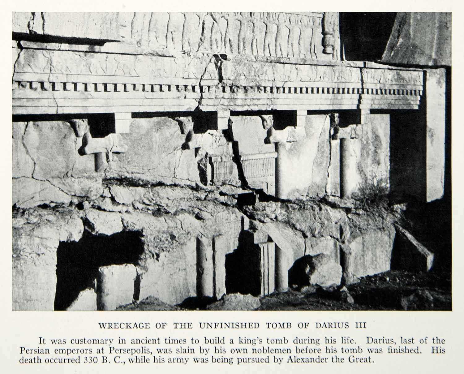 This is an original 1933 black and white halftone print of the unfinished tomb of Persian Emperor Darius III, murdered by his own nobles while at war with Alexander the Great.