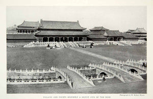 This is an original 1933 black and white halftone print of the palaces and courts of the Forbidden City in modern Beijing, China.