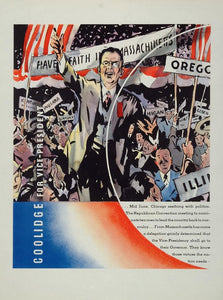 This is an original 1933 color print of an illustration of the 1920 Republican Convention which elected Calvin Coolidge of Massachusetts as the Republican nominee for Vice-President.