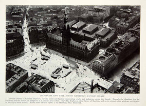 This is an original 1933 black and white halftone print of an aerial view of the senate building in Hamburg, Germany.