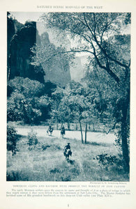 This is an original 1933 black and white halftone print of the landscape inside Zion Canyon, in southern Utah.