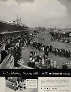1934 Ad Cine Kodak K Movie Camera Churchill Downs Derby - ORIGINAL FT1