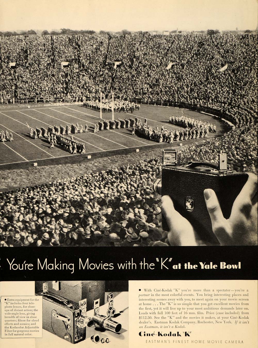 1934 Ad Eastman Kodak Cine K Movie Camera Yale Bowl - ORIGINAL ADVERTISING VF1