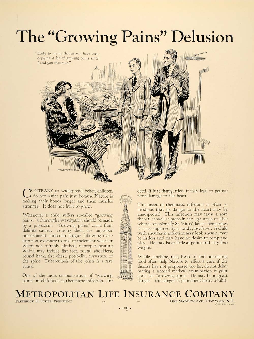 Keywords specific to this image: Future Planning, Family Planning, St. Vitus, Tuberculosis, One Madison Avenue New York, James Montgomery Flagg, Mens Suits, Tailor, Growing Pains Vintage Advertising