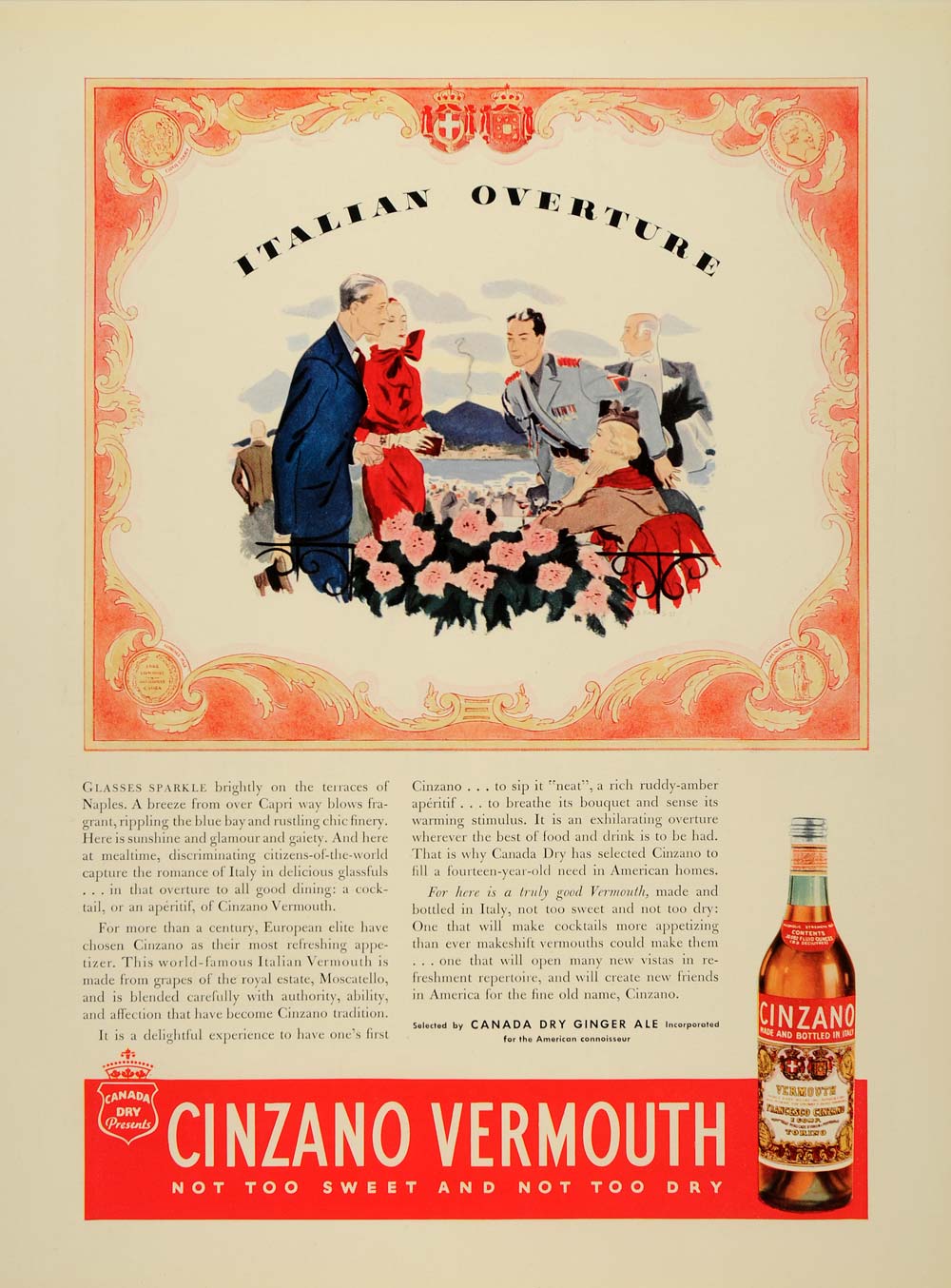 Keywords specific to this image: Military Uniform, Canada Dry Ginger Ale Incorporated, Vintage Liquor Bottles, Antique Alcohol, Italian Vermouth, Moscatello Vintage Advertising