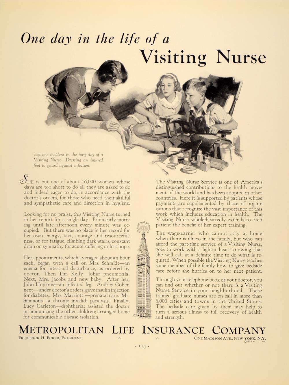 Keywords specific to this image: Future Planning, Simmons, Bleuer, Lucy Carleton, Diphtheria, Jacobs, Tim Kelly, Schmidt, Visiting Nurse, Health, Illness, Frederick H. Ecker, Health Care, Death Prevention, Infection, Children, Mother, Nurse Vintage Advertising