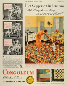 This is an original 1934 color print ad for Congoleum Rugs by Congoleum Nairn Inc. located in Kearny, New Jersey.