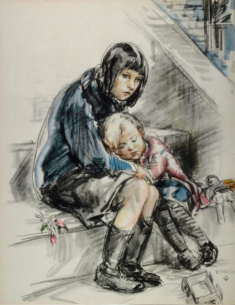This piece was illustrated by Charleson. Artist signature in print - bottom right of image.