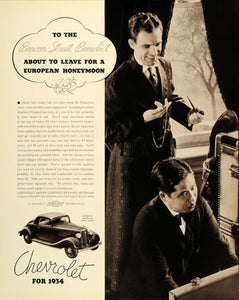 Keywords specific to this image: Car Enthusiasts, European Honeymoon, Beacon Street Benedict, Chevrolet Motor Company, Detroit, Car Features, Antique Automobiles Vintage Advertising
