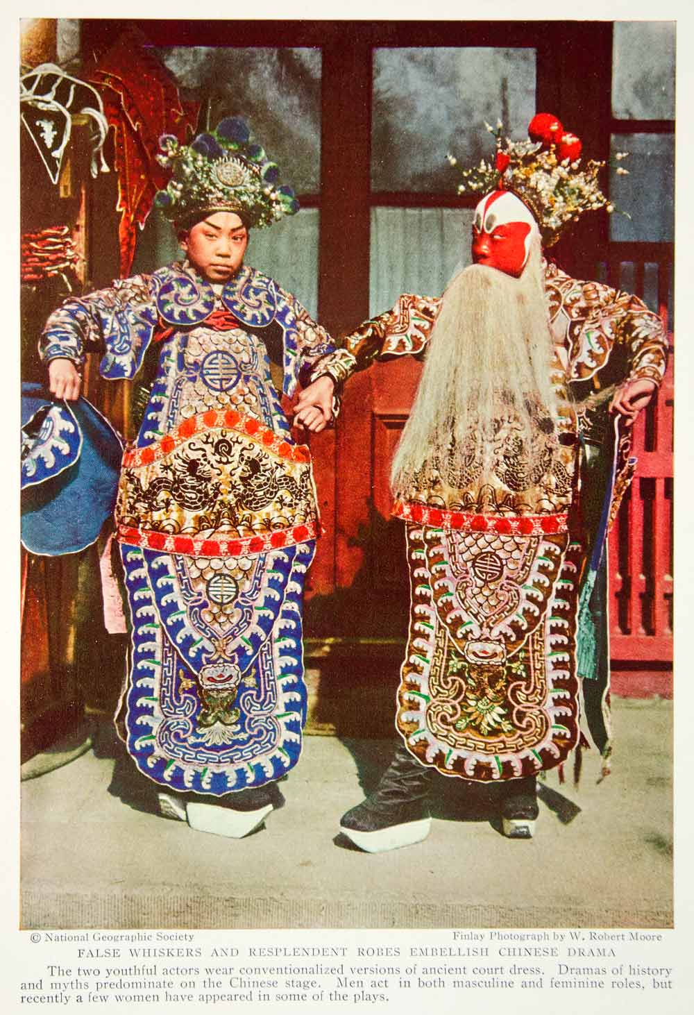 This is an original 1934 color print of two Chinese dancers wearing their traditional costume.