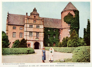 This is an original 1934 color print of Skarhult Castle, found in Southern Sweden.