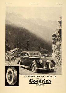 This is an original 1934 black and white French print ad for Goodrich tires.